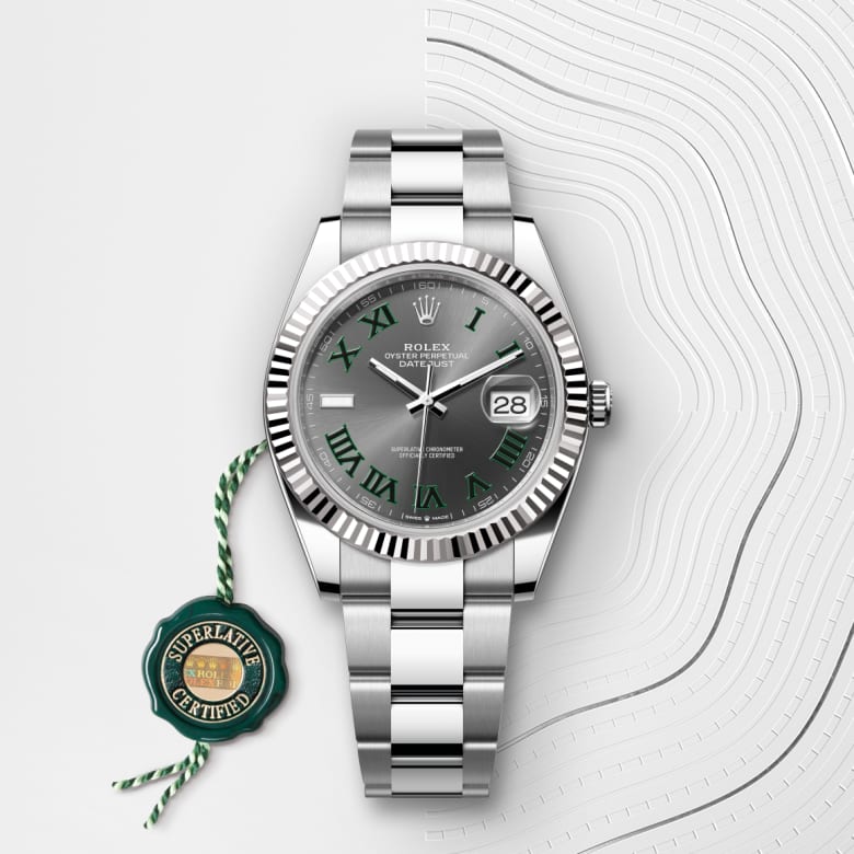 The Rolex fluted bezel is a mark of distinction. Originally, the fluting of the Oyster bezel had a functional purpose: it served to screw the bezel onto the case helping to ensure the waterproofness of the watch. It was therefore identical to the fluting on the case back, which was also screwed onto the case for waterproofness, using specific Rolex tools. Over time, the fluting became an aesthetic element, a genuine Rolex signature feature. Today the fluted bezel is a mark of distinction, in gold on this Datejust 41.