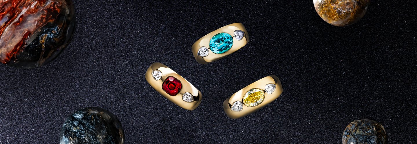 Each of our Stellar rings is expertly handcrafted in 18K yellow gold at our British workshop, showcasing the beauty of our galaxy in a bold statement ring. Our skilled artisans meticulously craft each ring and flush-mount the striking gemstones. Mastering this setting requires exceptional skill, and a meticulous attention to detail when polishing the coloured gemstones to attain a flawless finish.